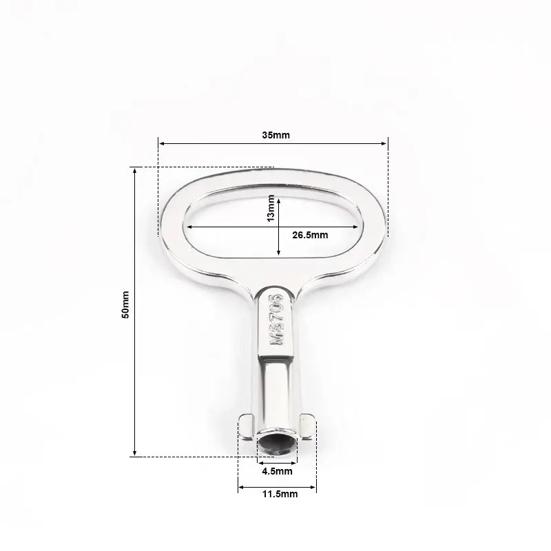 Алуминиев двоен битов ключ с алуминий с никел: Общи размери 35 × 50 мм, заключен цилиндър Център Диаметър 4,5 мм, Център за заключване на цилиндъра + Двоен диаметър на зъбите 11,5 мм.