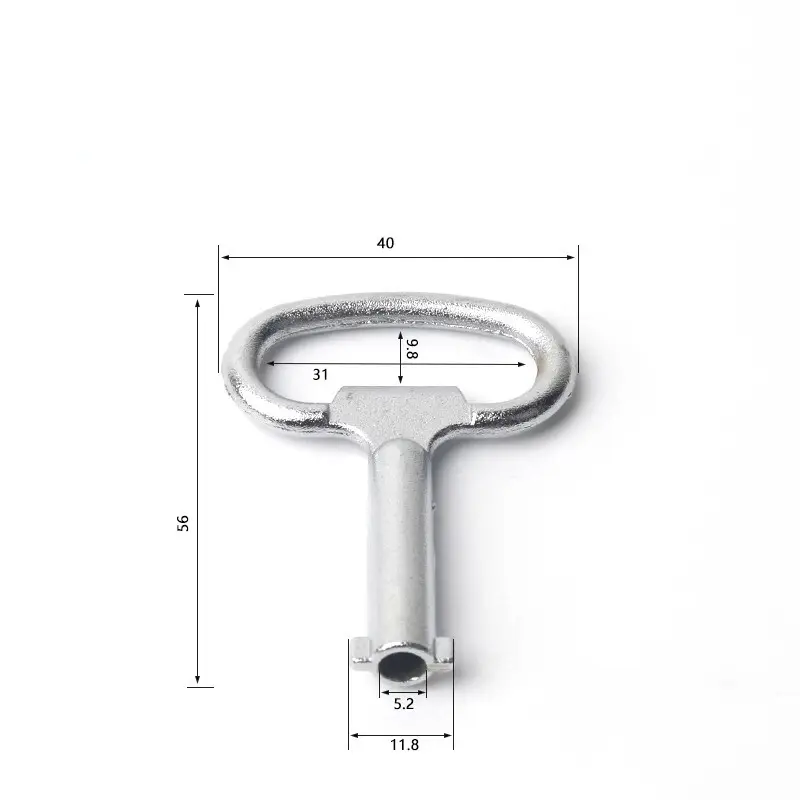 Алуминиев двоен битов ключ за покритие на сатен: Общи размери 40 × 56 мм, заключен цилиндър Център диаметър 5.2 мм, Център за заключване на цилиндъра + Двоен диаметър на зъбите 11.8 мм.