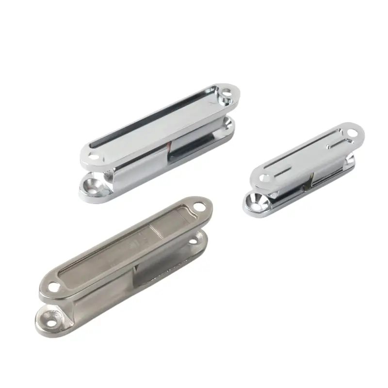 Тази серия от панти се предлага в два материала: версията на цинковата сплав се обработва с ярко хромирано покритие за огледален ефект. Версията от неръждаема стомана поддържа оригиналния цвят на метала с четкано покритие.