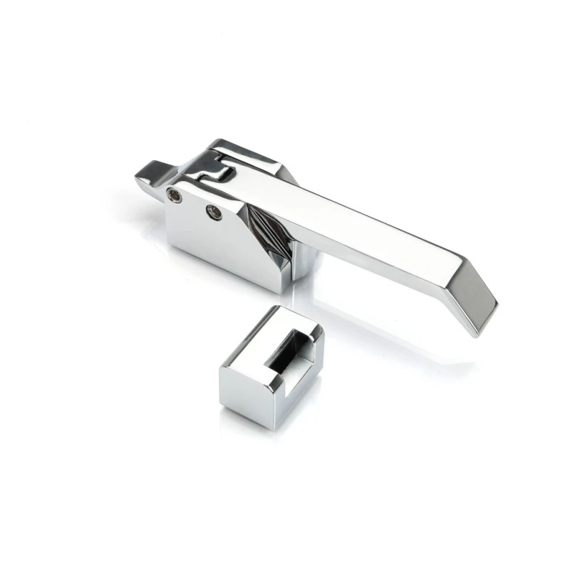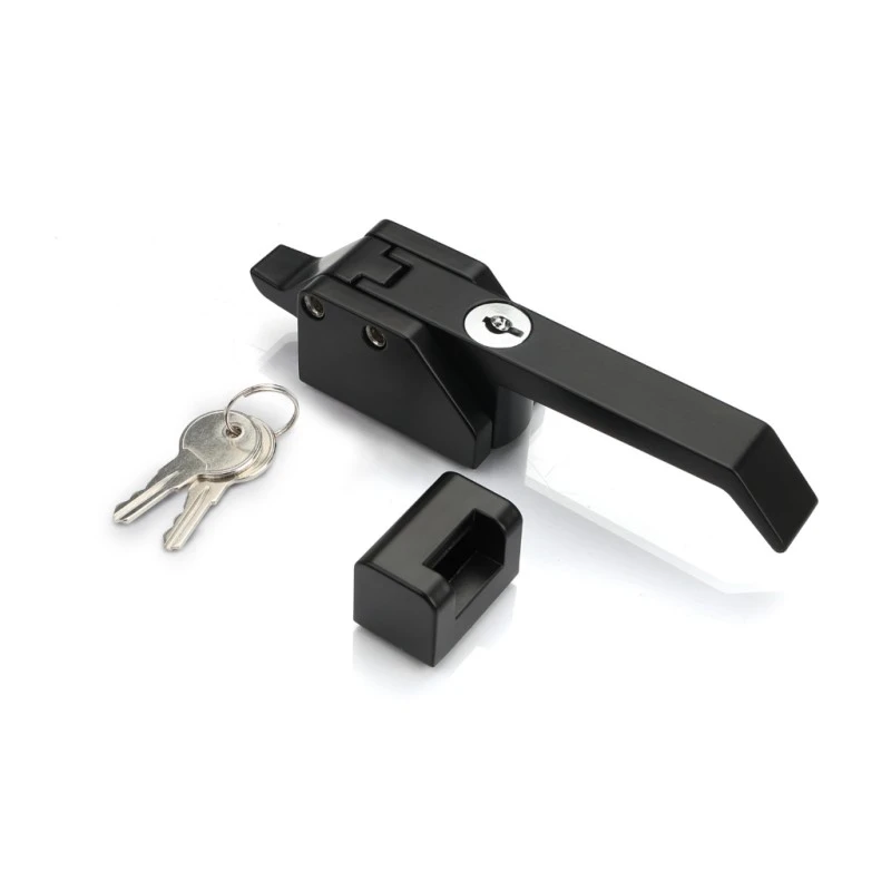 Тази компресионна брава за фризери и промишлени врати осигурява врати на фризери, хладилни камери, контролни шкафове и кутии за индустриално оборудване. Неговата компактна дръжка и здрава ключалка поддържат дефинирано отваряне и затваряне, подходящи за хладилни системи, индустриални машини и разпределителни панели.