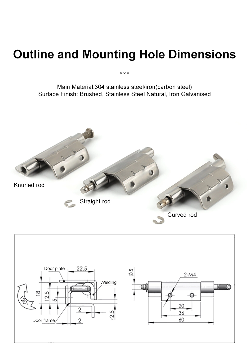 Въртящата се панта на разпределителното табло се предлага с прав прът, огънат прът и назъбен прът.